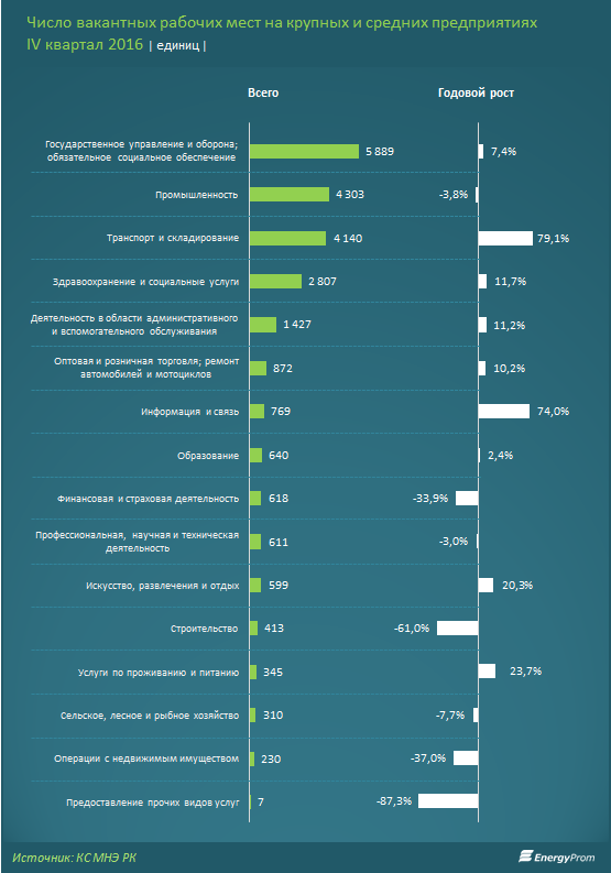Среди отраслей самая высокая потребность в кадрах для крупных и средних компаний отмечена в сегменте государственного управления и обороны, и обязательного социального обеспечения - 5,9 тысячи вакансий.