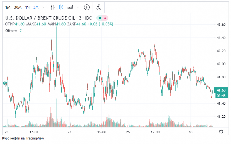 Сейчас цена нефти марки Brent сложилась на уровне 41,58 доллара за баррель.