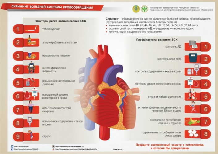 Сердечно-сосудистые заболевания опасны, однако они относятся к тем заболеваниям, которых можно избежать, соблюдая простые правила, считает Центр поддержки здорового образа жизни Павлодара и рекомендует регулярно проходить плановые профилактические осмотры, отказаться от алкоголя и табака, употребления вредных продуктов питания, соблюдать режим труда и отдыха, вести умеренную физическую активность.