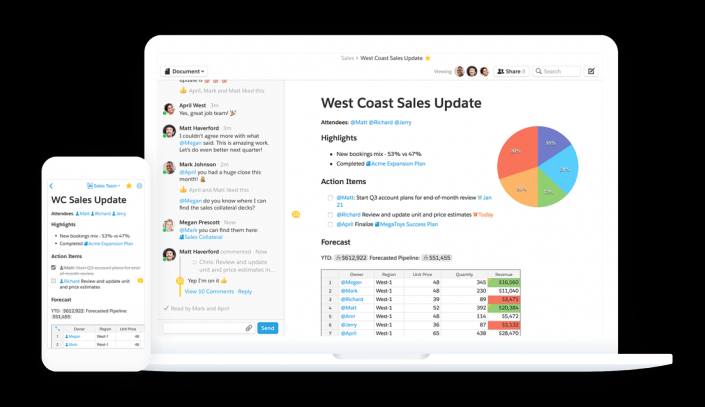 Облачная платформа Quip позволяет работать с электронными документами, таблицами, слайдами и обсуждать все с участниками своей команды в чате, встроенном в каждый документ, - по данным опроса, благодаря этому компании-клиенты используют для общения на 43 процента меньше электронной почты. В "Заявлении о конфиденциальности" Quip указывает, что "может" передавать третьим лицам собранную о пользователях информацию. Сервис является платным и группе из пяти человек обойдется в 30 долларов в месяц, а за каждого дополнительного пользователя придется ежемесячно платить еще 10 долларов. Предусмотрена бесплатная пробная версия.