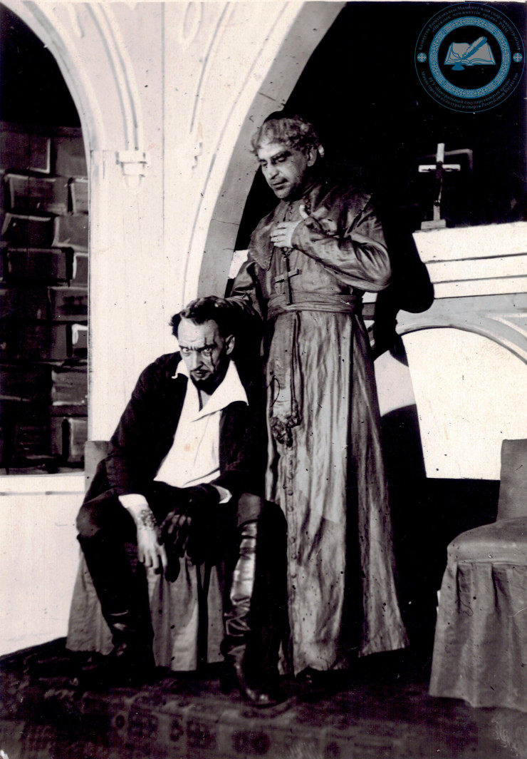 Ю.Л. Рутковский (слева) в роли Овода, Василевский в роли Монтанелли в спектакле "Овод" по одноименному роману Э.Л. Войнич. Алма-Ата. 1936-1939 гг. ЦГА РК. Ф. 1712. Оп. 1. Д. 52.
