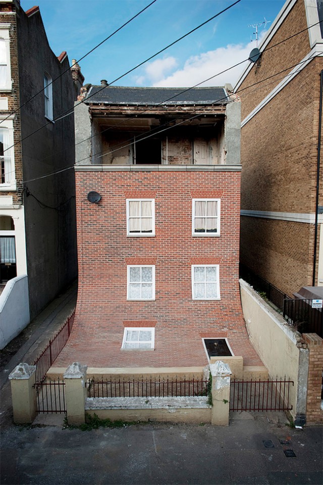 Британский художник и дизайнер Алекс Чиннек на удивление местным прохожим из графства Кент создал здание со "сползающим" фасадом, обнажающим верхний этаж.