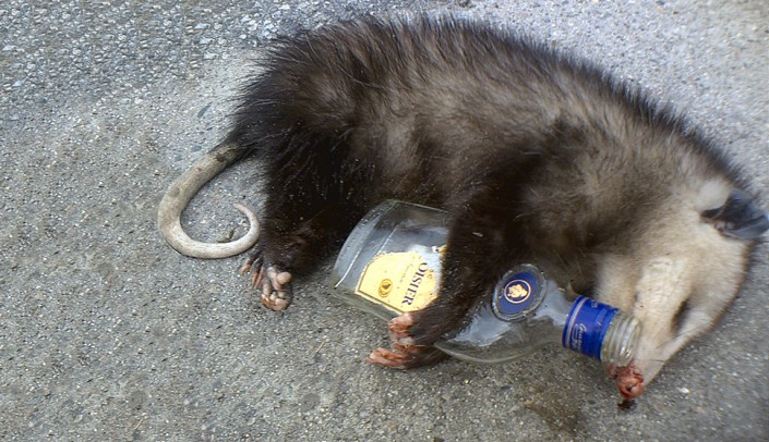Станиславский никогда не крикнул бы "Не верю!" опоссуму, что притворился мертвым. Когда опоссум пугается, он ложится на бок, закрывает глаза, из носа у него течет кровь, и вообще он виртуозно играет мертвяка. А когда опасность, сфотографировав его с бутылкой, уходит, опоссум волшебным образом оживает. В английском даже есть выражение playing possum - "прикинуться никаким".