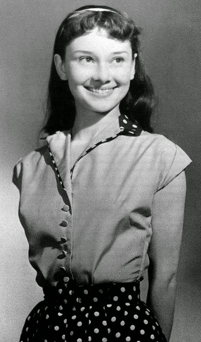 Одри Хепберн, 13 лет (1942 год). Одри родилась в Бельгии, но выросла в оккупированной немцами Голландии. После окончания войны она переехала в Англию и стала сниматься в кино.