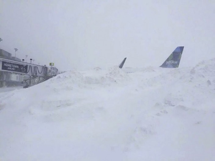 Погребенные под снегом самолеты в аэропорту Кеннеди