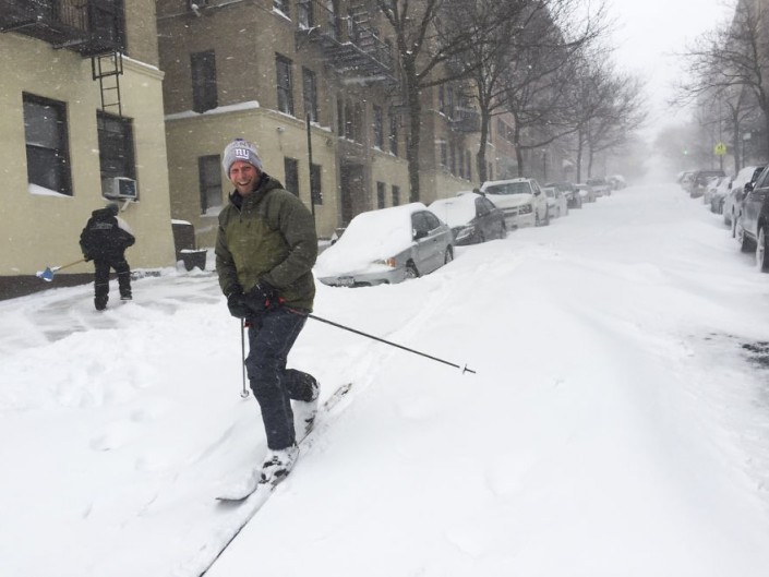 Жители Нью-Йорка разъезжают по улицам на лыжах