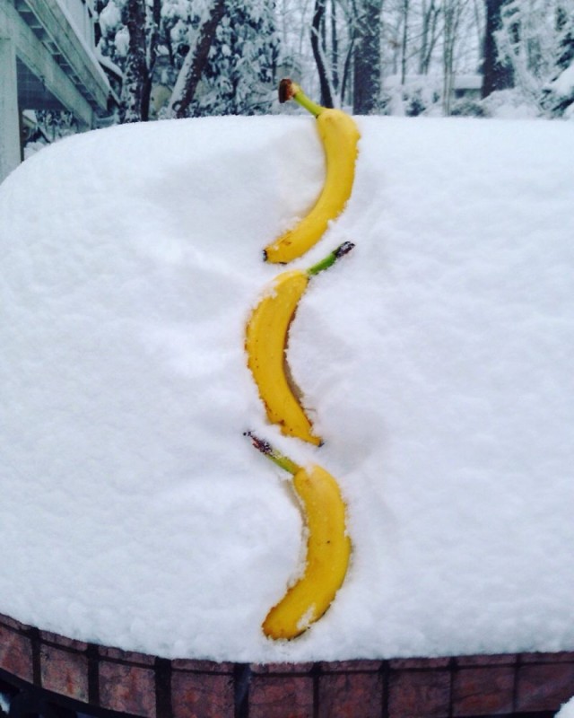 Восточное побережье США накрыла мощная снежная буря, в результате чего встали даже такие крупные города, как Нью-Йорк и Вашингтон. Снегопад затронул 85 миллионов человек, и его уже назвали одним из самых сильных за последний век. Несмотря на катаклизм и гибель десятков людей, американцы не унывают и развлекаются, измеряя сугробы бананами и охлаждая в них выпивку. Доказательством этому служит нижеприведенная подборка фотографий очевидцев из социальных сетей.