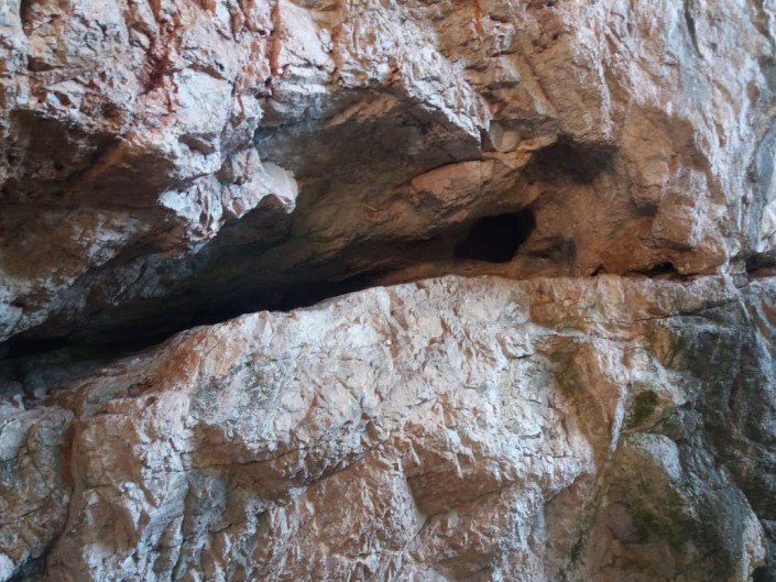 По одной из них, рассказывает нам наш гид, в этой пещере долгие годы жил большой и злой дракон. Он приносил много бед местному населению, пожирал их скот. Когда дракон взлетал, то задевал крыльями часть свода и поэтому она рушилась. Конец его пагубным действиям положил пророк Сулейман. Он посадил чудище на цепь. Гид указывает нам место, где спал этот дракон - самый центр пещеры, куда попадают солнечные лучи.