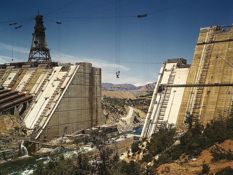 Строительство плотины Шаста в штате Калифорния, июнь 1942 года