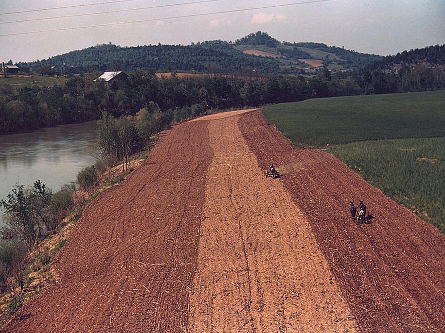 Кукурузные поля вдоль реки, северо-восток штата Теннеси, май 1940 года
