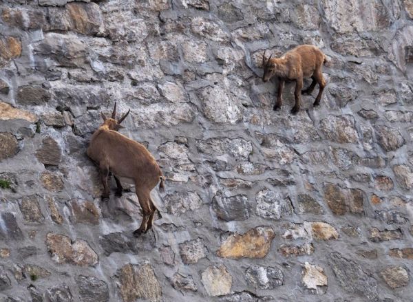 Жительница Италии Федерика Грасси посетила Пьемонт и сделала удивительные снимки альпийских коз, гуляющих по отвесной стене местной плотины, которая была построена еще в 1925 году. По наблюдению женщины, градус наклона дамбы составляет почти 90 градусов, а высота - 49 метров. Однако животным эти цифры оказались безразличны.