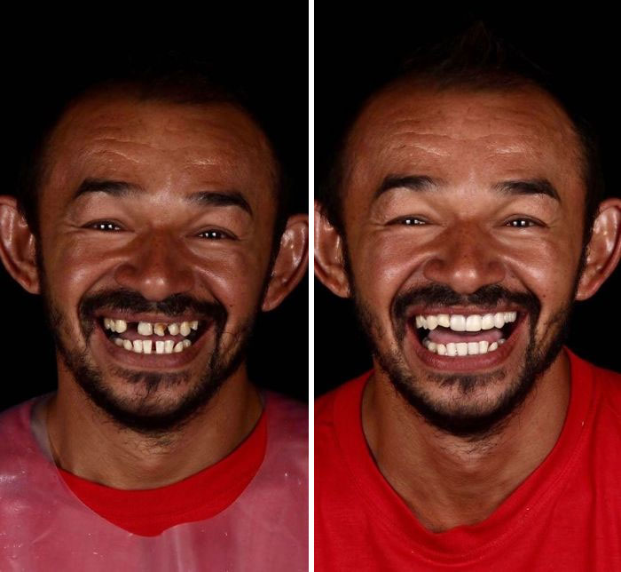 Фелипе Росси на своей странице в Instagram выкладывает вдохновляющие фотографии улыбок клиентов до лечения зубов и после. На них видно, как хорошеют его пациенты.