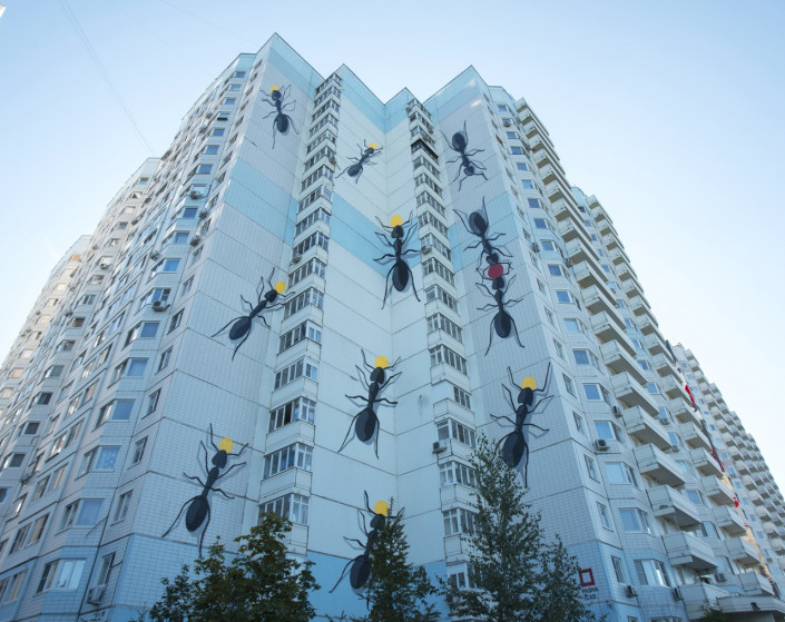 Казахстанский художник стрит-арта Паша Кас представил новое творение "Человейник", или Human Anthill, в Москве, сообщает TengriMIX.