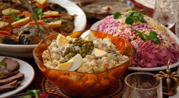 Главными новогодними блюдами на столах казахстанцев традиционно остаются салаты "Оливье", "Селедка под шубой" и мандарины. На горячее обычно подается бешпармак, манты или плов. А запивается все, конечно, шампанским.