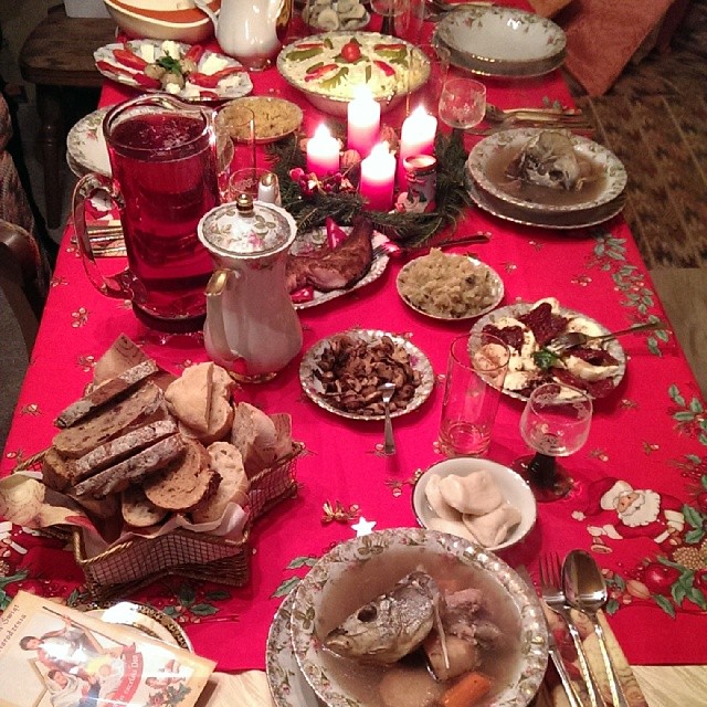 Польская традиция заключается в том, что на новогоднем столе должно быть ровно 12 разных блюд. И при этом никакого мяса. Супы, каши, картошка, клецки, выпечка. А во главе стола - рыба: заливная, запеченная, жареная. Здесь она считается символом семейного благополучия.