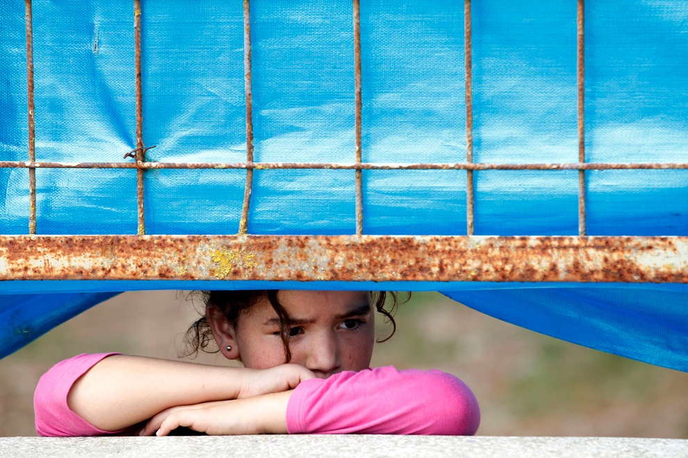 Сирийская девочка наблюдает за взрослыми в лагере для беженцев, расположенном на турецко-сирийской границе, 27 июля 2012 года. (REUTERS/Umit Bektas)