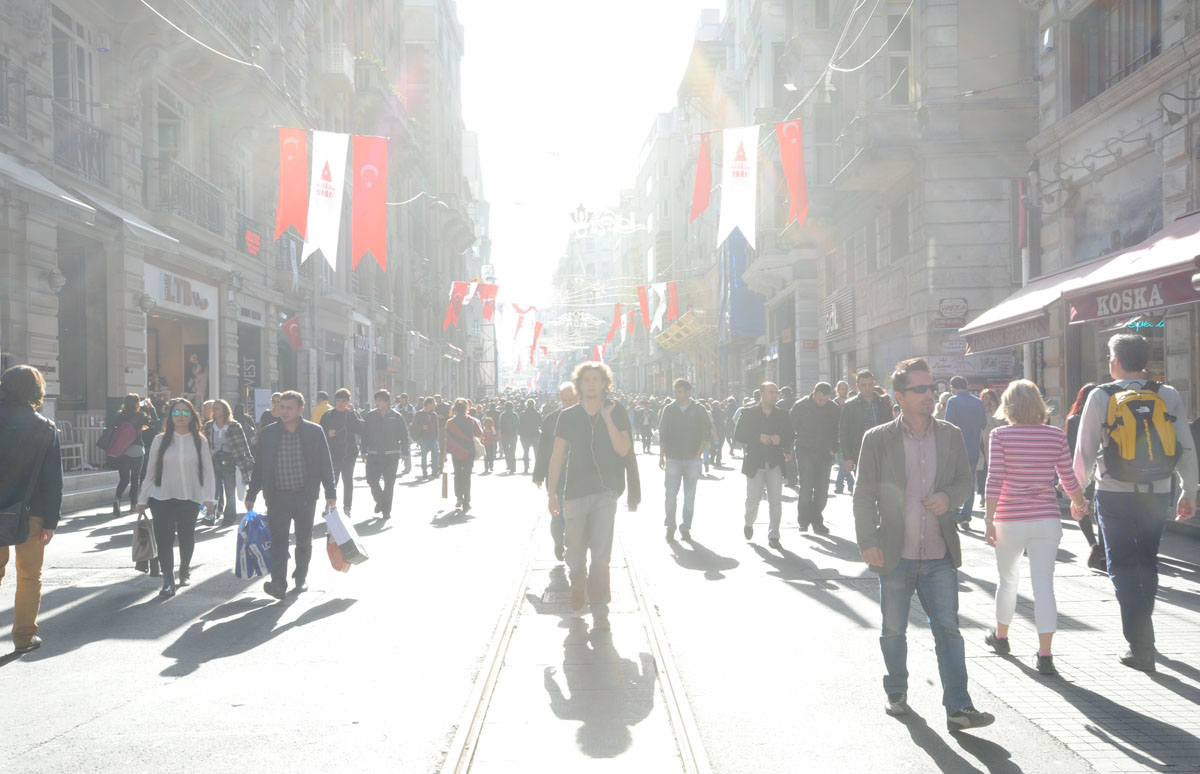 Мы поселились в районе Бейоглу, как пишут в путеводителях - сердце современного Стамбула. Центральная улица района Истикляль, казалось, заполнена людьми днем и ночью. Хотя мы были здесь в выходные, возможно, в будние дни картина иная.