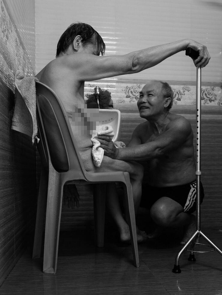 "Я сделал эту фотографию, увидев, как мой отец помогает моей матери мыться. Для них это был очень эмоциональный момент. У мамы был инсульт, половину ее тела парализовало, она с трудом передвигается. Мой отец единственный, кто заботится о ней каждый день. Если я выиграю 1000 долларов, то отдам эти деньги родителям", - сказал фотограф из Вьетнама.