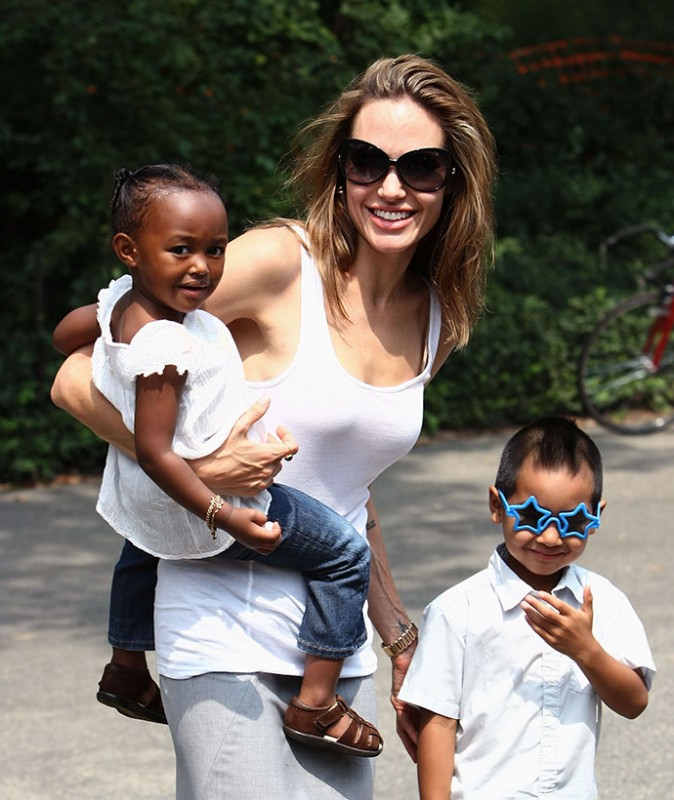 Анджелина Джоли с приемной дочерью Захарой и родными детьми
