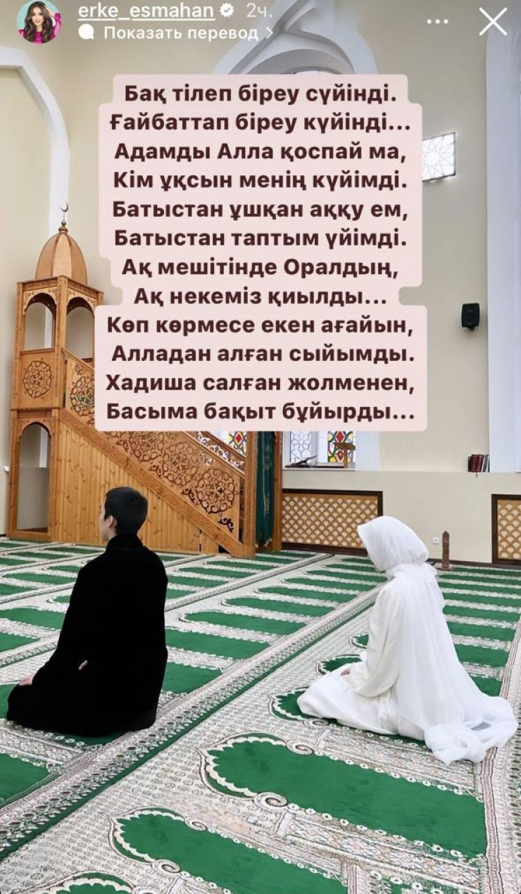 Ерке Есмахан опубликовала фото из мечети в Instagram, сопроводив его стихом.