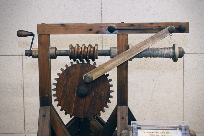 Леонардо придумал множество мелочей, которые были очень полезны. Потом он их же применял в своих механизмах. Храповик - это блокирующее устройство, которое не дает валу вращаться в обратном направлении.