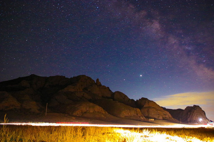 "Есть специальные карты засветки, если взглянуть на них, то за 300-400 километров от Алматы можно найти идеально темное небо. В таком месте я сделал эти снимки, хорошо виден Млечный Путь и мельчайшие звезды", - отметил фотограф.