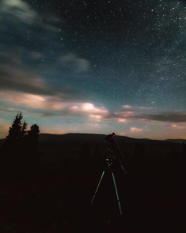 "Лучше всего снимать на природе, вдали от города, так можно увидеть больше звезд, без засветки. Погоду лучше выбирать безоблачную и снимать либо в новолуние, либо после захода луны. Из техники самым основным компонентом является штатив, поскольку фотографии необходимо делать на длинной выдержке. Что же касается настроек, то лучше всего будет максимально открыть диафрагму, включить автоспуск затвора, так как нажатие кнопки может повлиять на четкость снимков. Надо стараться не ставить светочувствительность более 3 200, в противном случае на изображении начнут появляться шумы. Также необходимо установить фокус вручную.