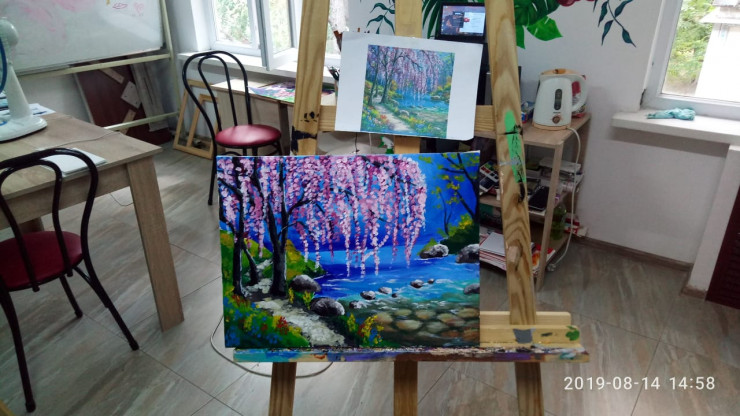 Практически всегда юный художник выбирает пейзаж, отмечая, что красивая природа способна порадовать любой глаз. На одну картину ему достаточно трех часов.
