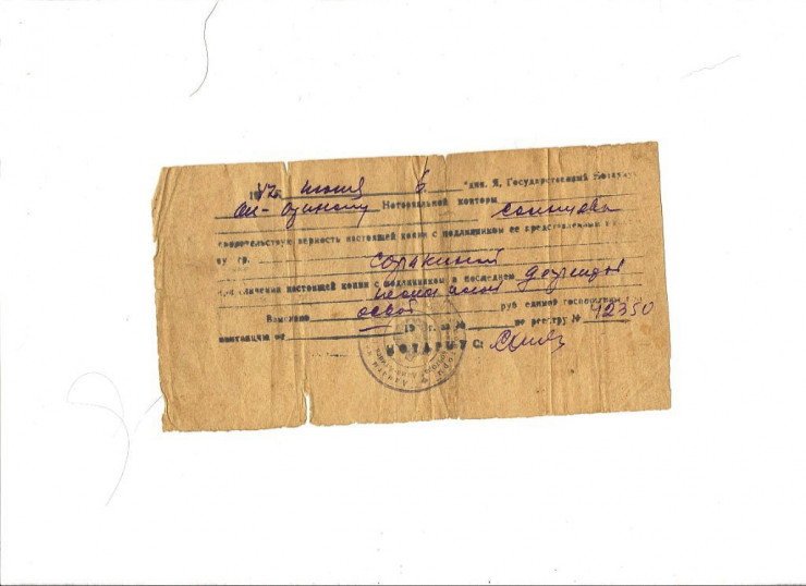 "Моя бабушка Валентина Сорокина рассказывала мне, что он погиб при обороне Москвы. Когда я переехала жить в Москву, я долгое время хотела найти его могилу. Родственники сказали, что у них на хранении есть копия документов, свидетельствующих о том, что он был в 316-й стрелковой дивизии. Была также копия повторного извещения о том, что он умер от ран и похоронен на братском кладбище в городе Истре. Призывался он из Алма-Аты как раз в то время, когда формировалась Панфиловская дивизия.