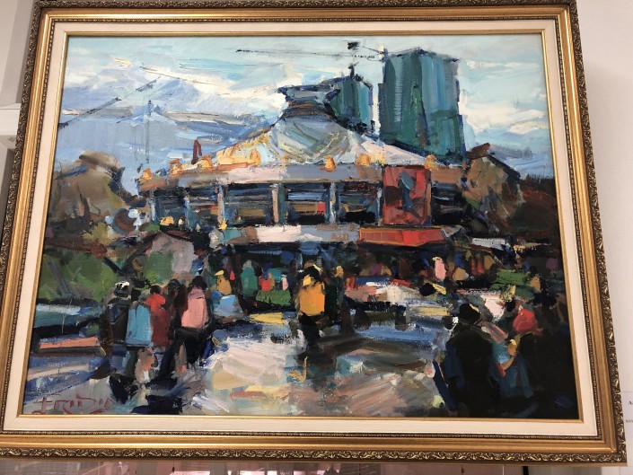 Около 40 картин написаны всего за год. Слияние прошлого, настоящего и будущего четко выражено на изображении с цирком. Это 2011 год, когда высотки только строились.