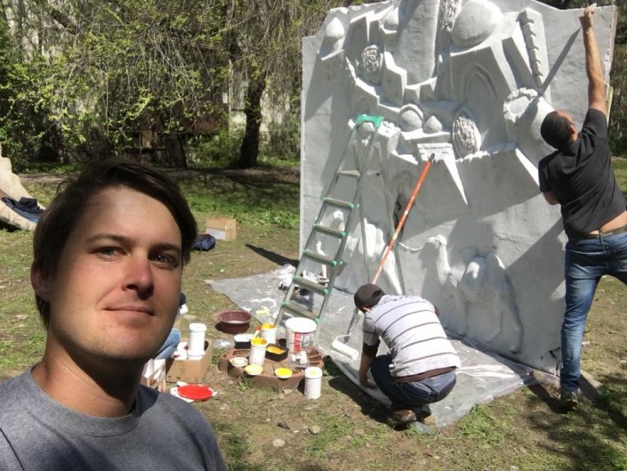 Об этом монументе ему рассказал художник Роман Захаров, с которым он работает и тесно общается. Было решено очистить барельеф. Буквально за два дня силами команды из пяти человек монумент полностью преобразился.