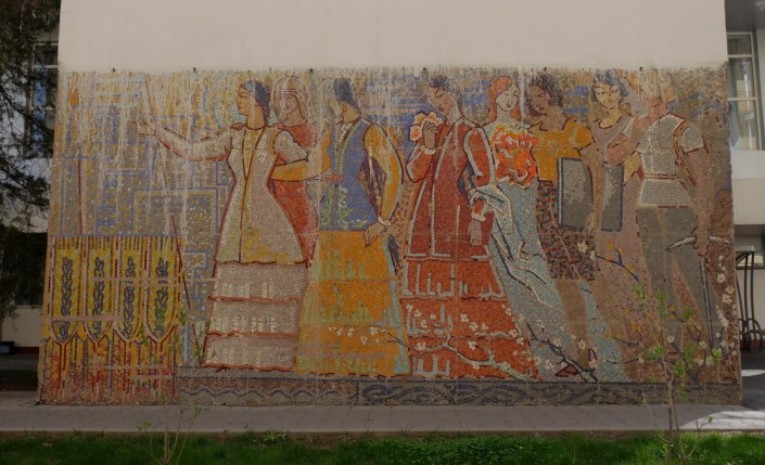 Мозаика 1968 года, находящаяся на территории ЖенПИ . © Monumental Almaty