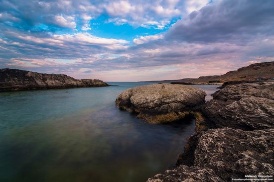Смотреть на море и небо можно бесконечно - волны, набирающие высоту, и облака, окрашенные солнцем, сливающиеся воедино. Предлагаем вам взглянуть на жемчужину Казахстана - Голубую бухту и насладиться прекрасной панорамой и атмосферой снимков Александра Колесникова.