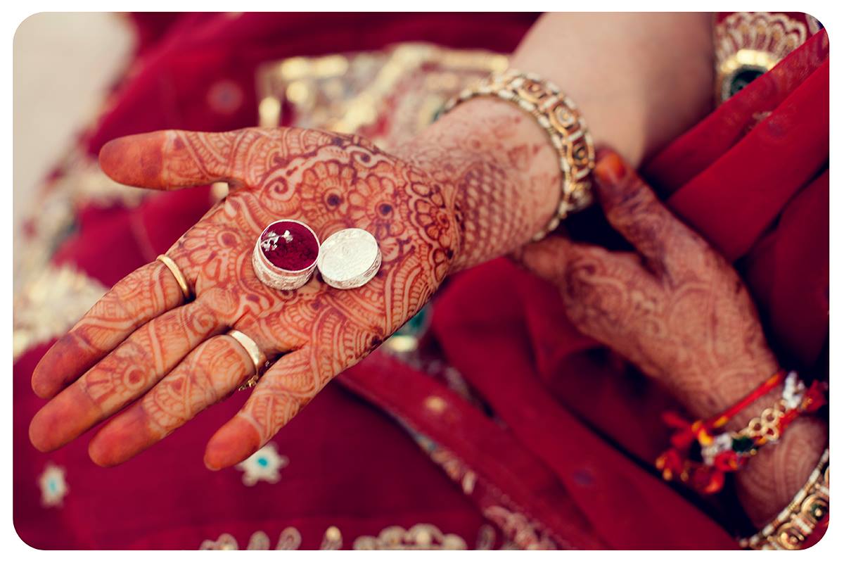 После обхода семи священных кругов (саптапади) вокруг костра, жених наносит своей, теперь уже законной жене, синдур, монетой или кольцом окрашивает ее пробор красным. Теперь она будет это делать сама каждое утро и более тривиальным способом, например помадой.