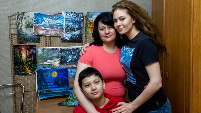 "Его картинами очень интересуются, заказывают, просят продать. Первыми поклонниками его таланта стали узбекистанцы, они забрали его работы в Ташкент. Также из Турции девушка приезжала, она заранее заказала, просила нарисовать его видение оазиса. Он нарисовал две картины, как оазис выглядит внутри и какой он снаружи. Ей очень понравилось, она их забрала. Однажды мужчина попросил нарисовать его иномарку с номерами. Потом Давид ходил в автоцентр, любовался машинами и в подарок им нарисовал автомобили. В автоцентре до сих пор висит его подарок", - рассказывает мама подростка.