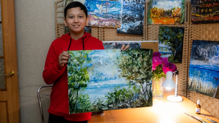 Неспособных детей не бывает, есть родители, которые не замечают их талантов. И если уделить детям хоть чуточку внимания, они смогут творить чудеса и разрисовать наш мир яркими красками. TengriMIX в рамках спецпроекта "Талантливые дети Казахстана", проводимого при поддержке компании ERG, побывал в гостях у 13-летнего художника из Алматы, чьими картинами восхищаются не только в Казахстане.