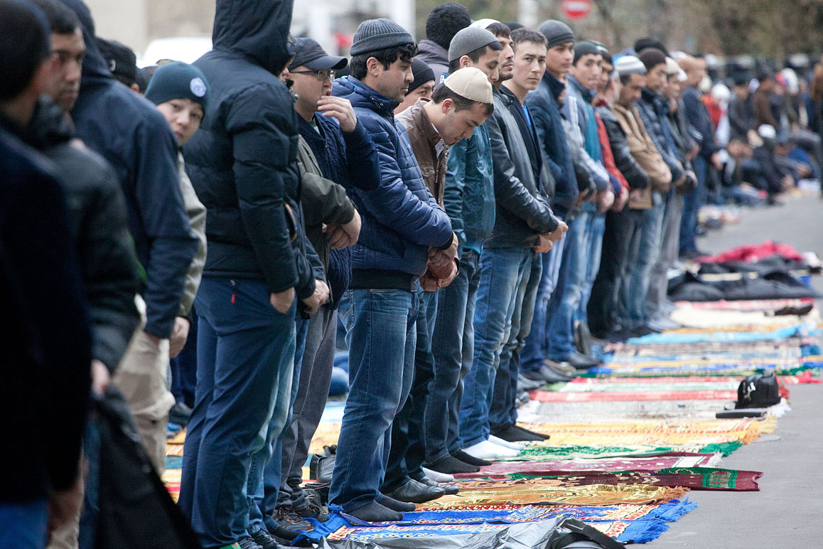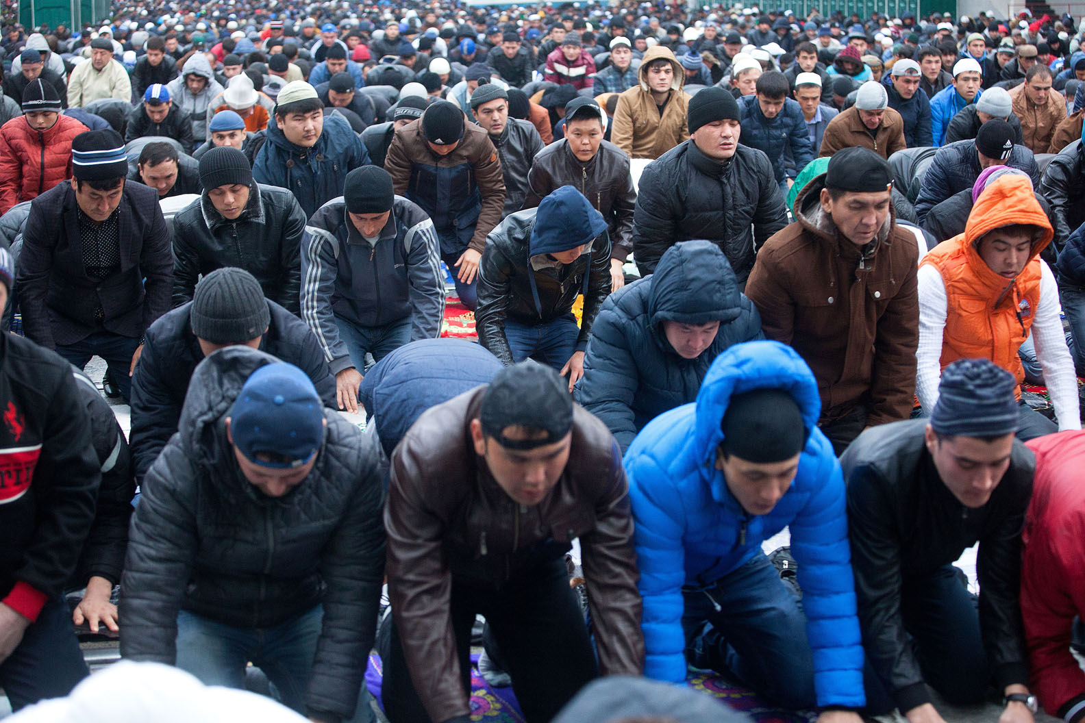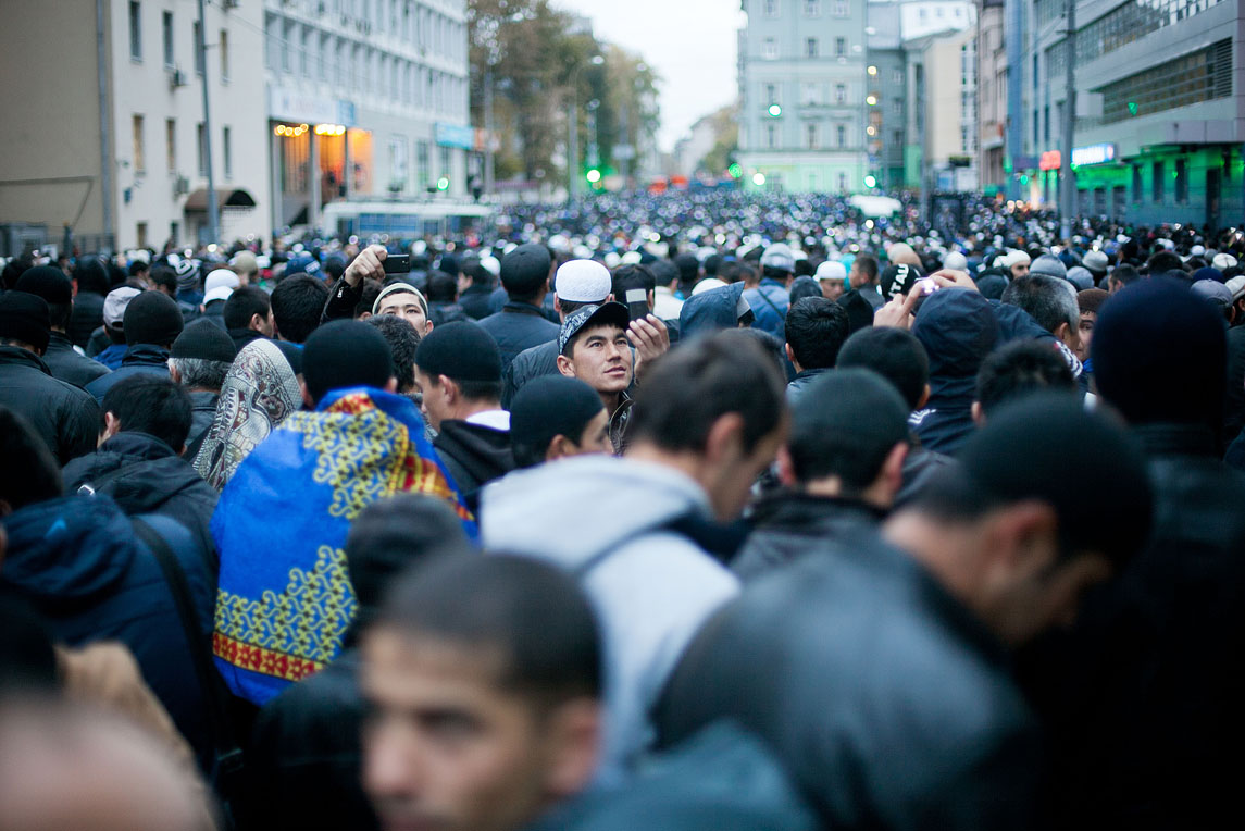 В Москве мусульманский праздник собрал около 130 тысяч человек. Молитвы состоялись в пяти действующих мечетях и на трех дополнительных площадках, выделенных мэрией. Больше всего людей пришли к Соборной мечети - примерно 50 тысяч человек. О том, как это было, - в фоторепортаже Bigpicture.ru