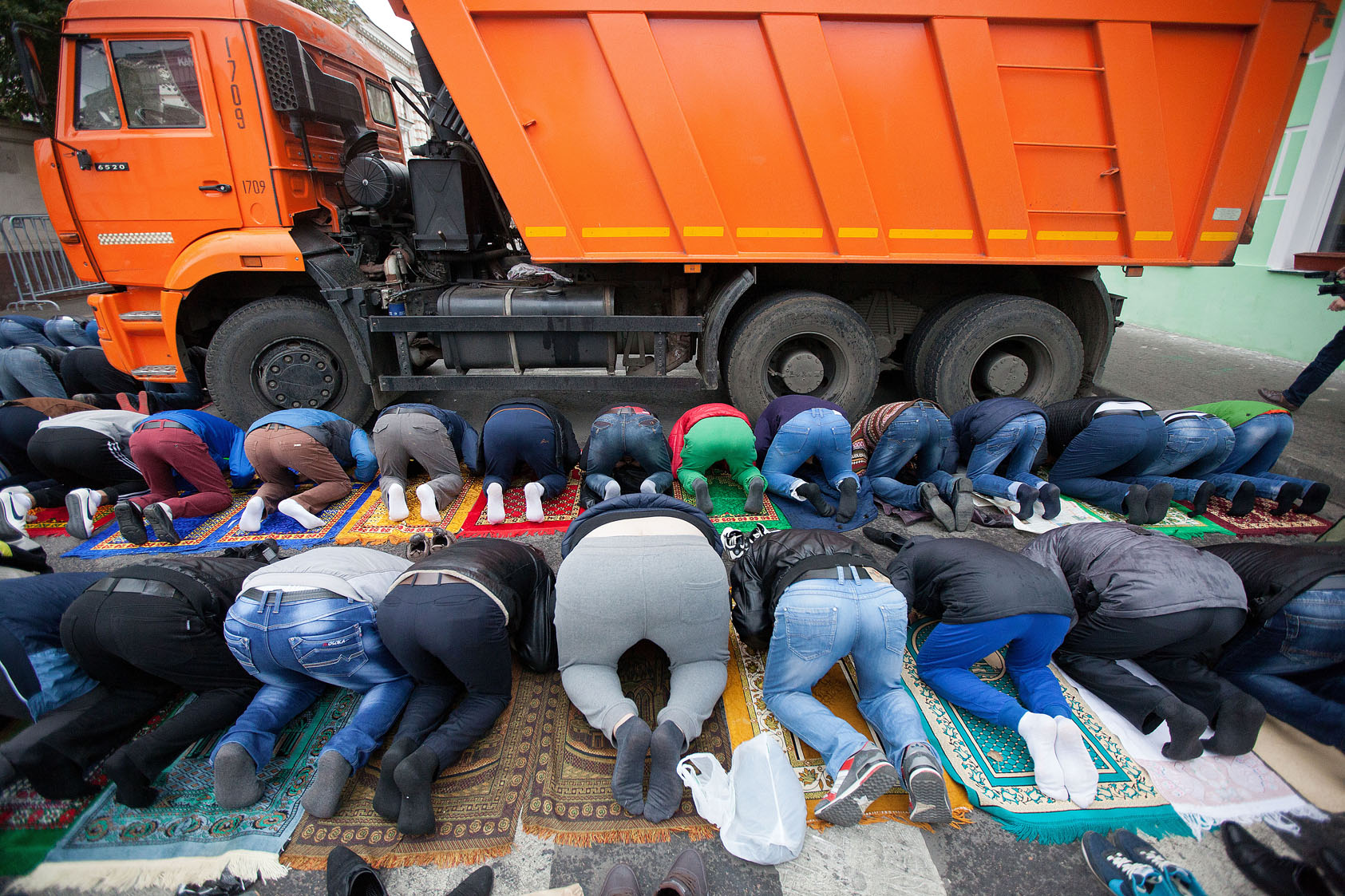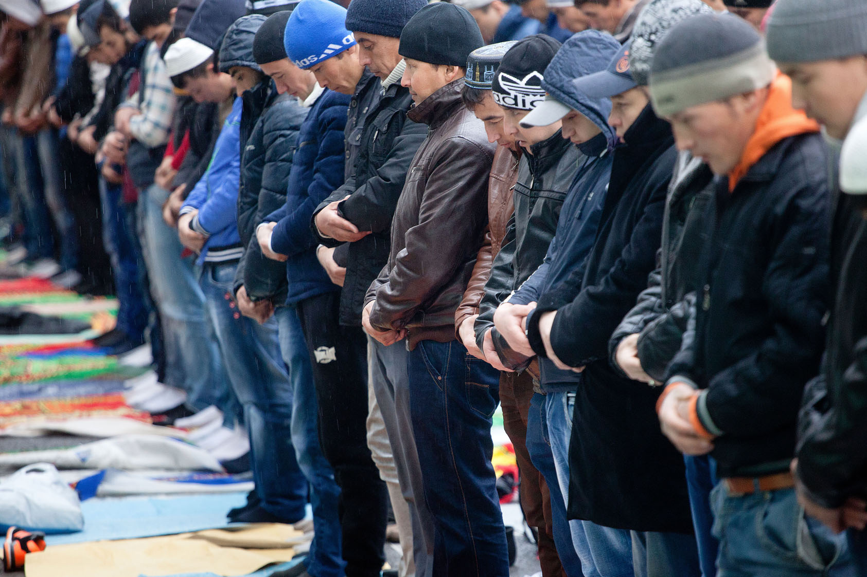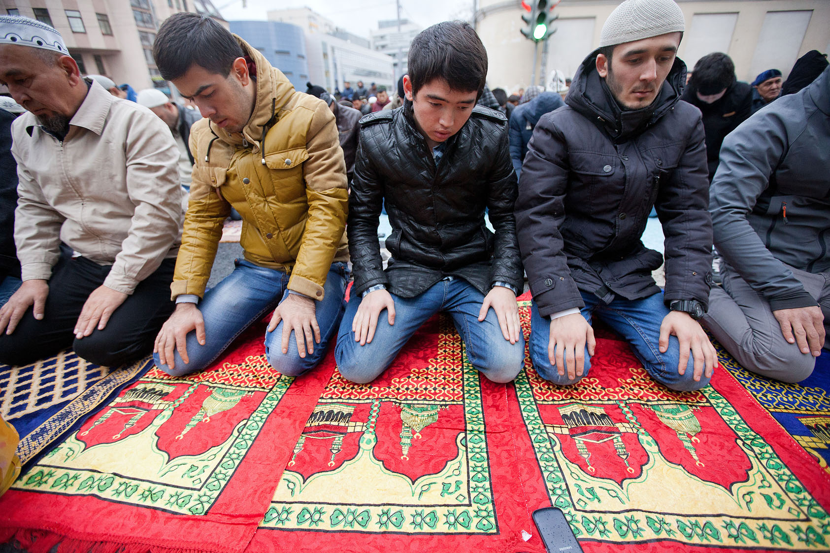 В Москве мусульманский праздник собрал около 130 тысяч человек. Молитвы состоялись в пяти действующих мечетях и на трех дополнительных площадках, выделенных мэрией. Больше всего людей пришли к Соборной мечети - примерно 50 тысяч человек. О том, как это было, - в фоторепортаже Bigpicture.ru