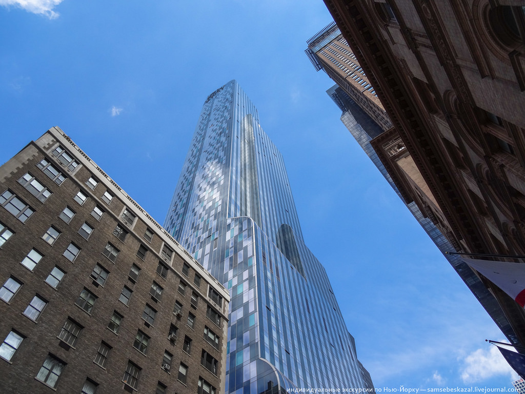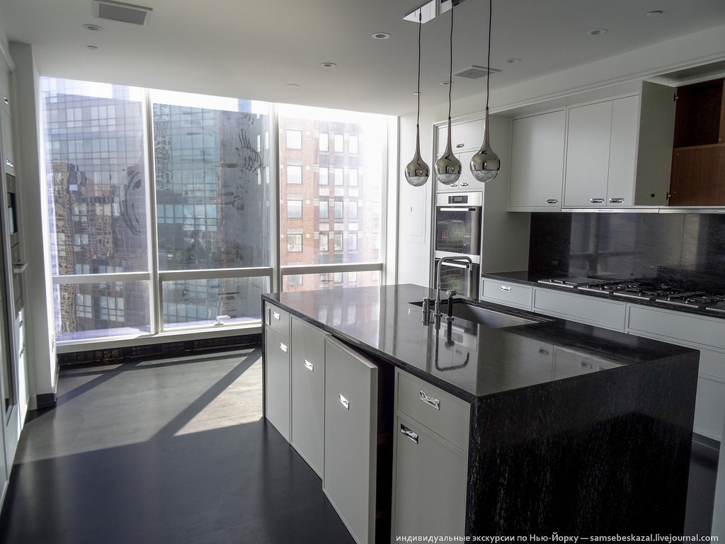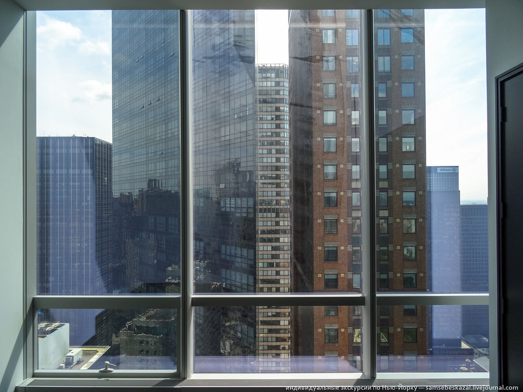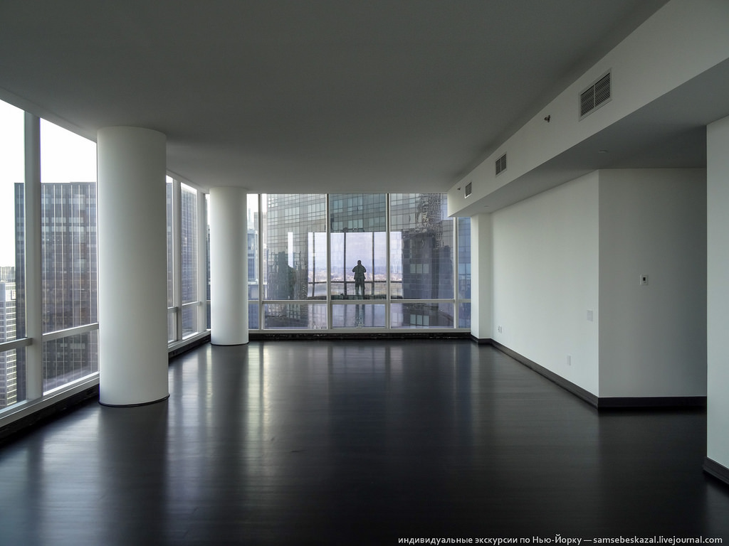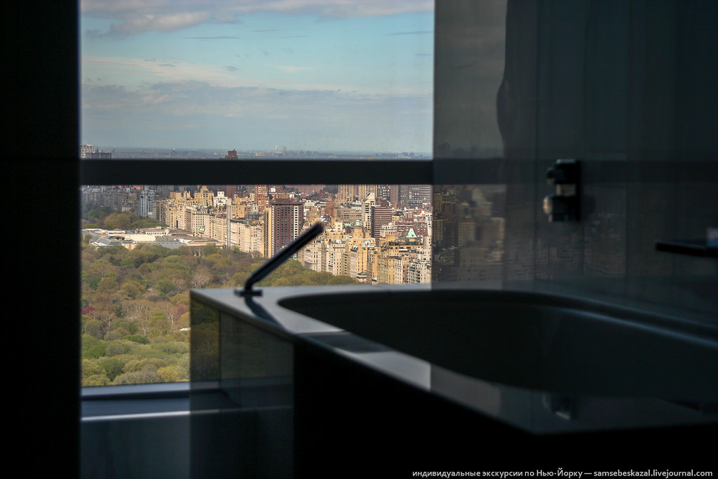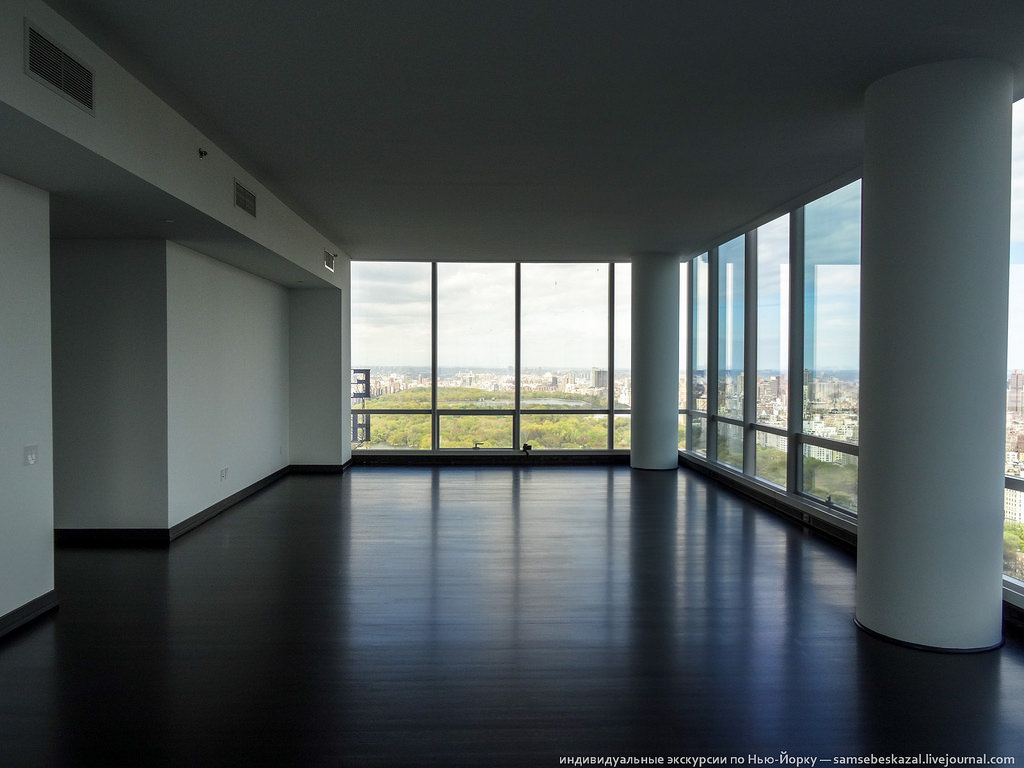 Много я видел видов в Нью-Йорке, но этот пока круче всех. Не так давно я рассказывал о новом жилом небоскребе One57, который побил рекорд на рынке нью-йоркской недвижимости - пентхаус на последних этажах был продан за 100 миллионов долларов. Так вот на днях у меня выдалась уникальная возможность побывать в этом доме. Почему уникальная? Да потому, что попасть в такое место, не зная кого-то из жильцов, просто невозможно. Вы не найдете фотографий интерьеров многих дорогих и известных домов Нью-Йорка просто потому, что их нет в Интернете. Что-то может появиться при продаже, но это бывает редко и будет снято так, что получить представление о том, как там на самом деле, не получится. А тут информация, что называется, из первых рук.