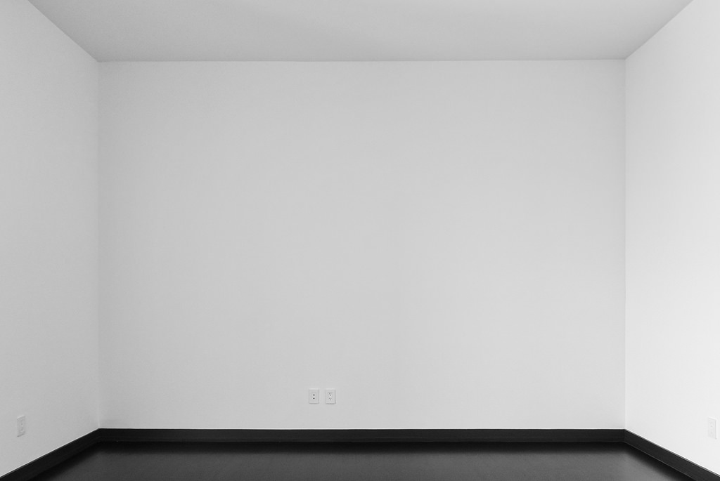В пустой квартире с высокими потолками есть своя привлекательность. Кстати, обратите внимание на отделку. Стены и потолок покрашены белой краской. Пол покрыт паркетом, который покрашен черной. Все двери тоже черные.