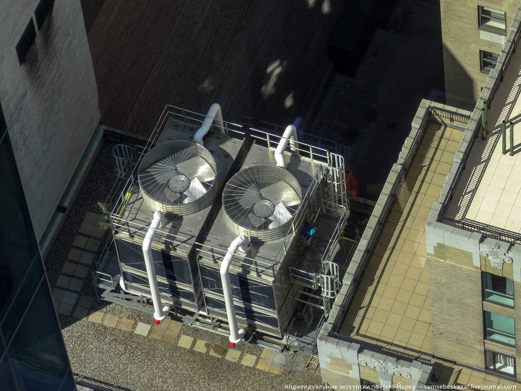 Тут видно, что сплит-системы в Нью-Йорке совсем не редкость. Просто внешний блок устанавливают их не на фасаде, а на крыше здания.