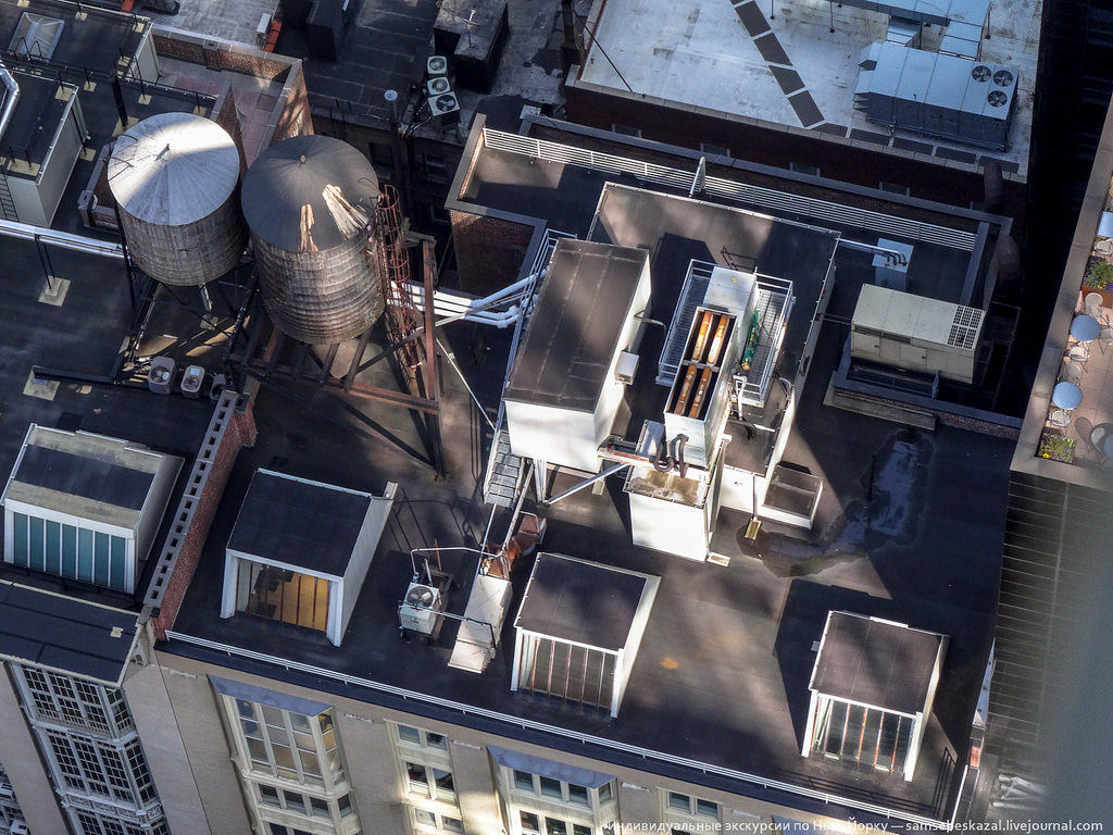 Обратите внимание, что почти все крыши либо заняты емкостями с водой/оборудованием, либо как-то обжиты.