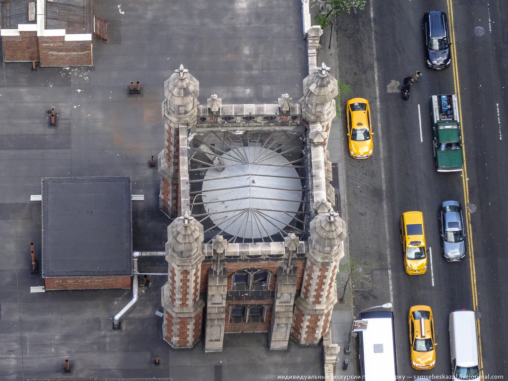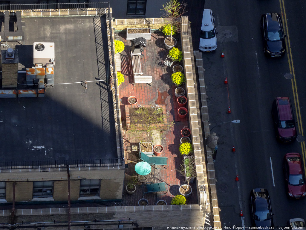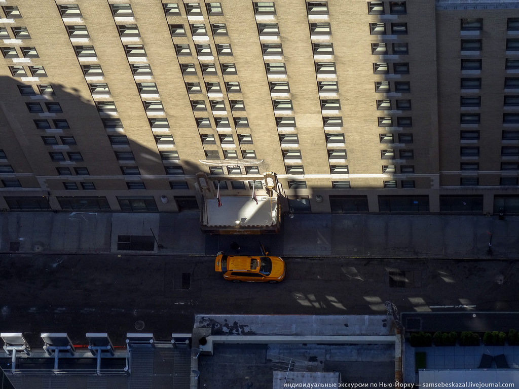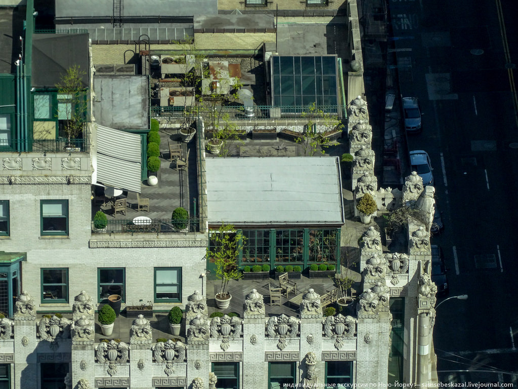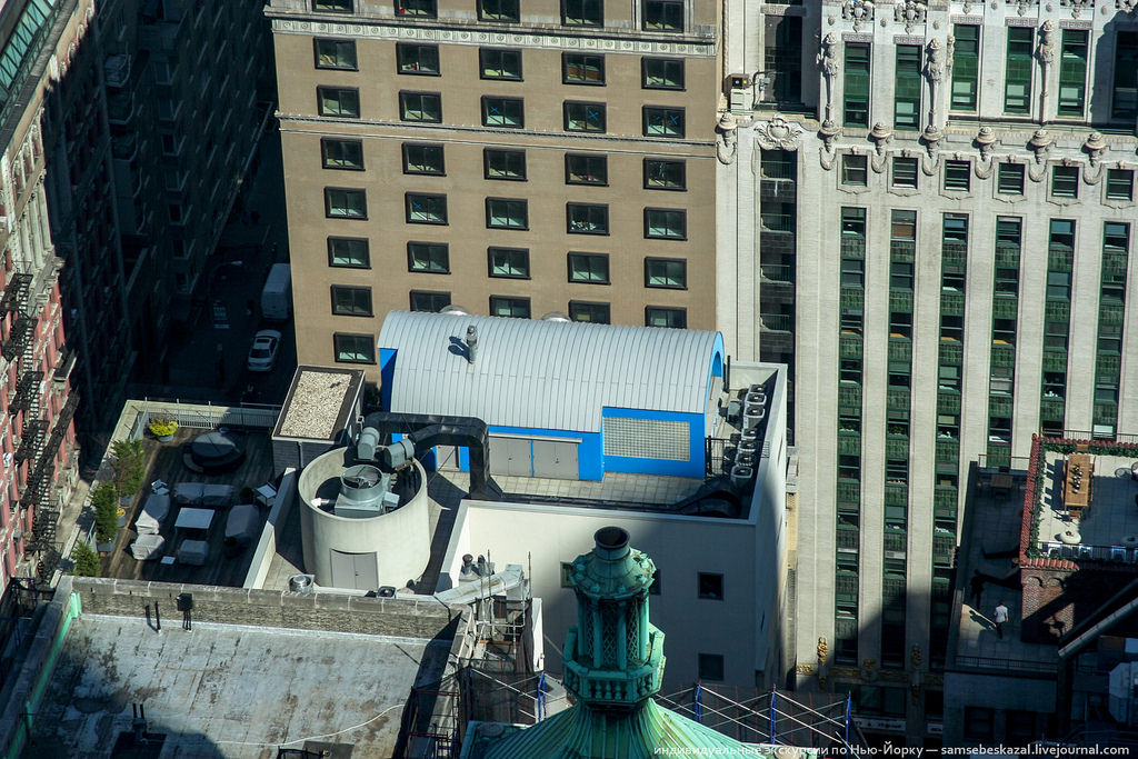 Крыша отеля "Плаза", оказывается, зеленого цвета. А еще она жутко перегружена оборудованием, но с земли этого не видно.