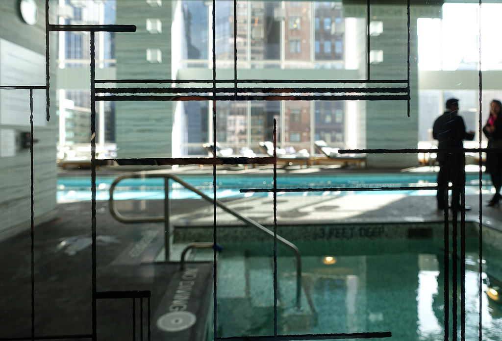 Бассейн отеля, в котором играет музыка из соседнего Карнеги-холла. На лежаках лежали карикатурные дяденьки-буржуи. Пузо, лысина и полное отсутствие привлекательности. Сопровождали их, естественно, роскошные блондинки и брюнетки.
