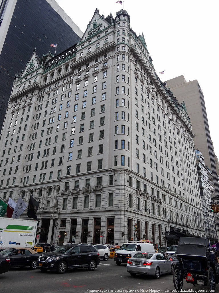 Краткая историческая справка, чтобы вы понимали о чем идет речь. Плаза это отель, построенный в 1907 году на пересечении Пятой авеню и 58-й улицы. И не просто отель, а один из самых знаменитых в Нью-Йорке. В Плазе останавливались многие известные люди. Например, там жила четверка "Битлз", во время их первого визита в США в 1964 году. Отель вы наверняка видели в фильме "Один дома-2". Герой Маколея Калкина, потерявшийся в Нью-Йорке, жил именно в Плазе. В холле он встретил тогдашнего владельца отеля - Дональда Трампа. Но с тех пор изменились и Маколей Калкин, и владелец, и сам отель.