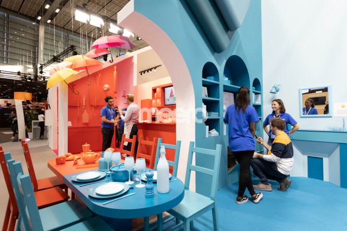 Отвлечемся от гостей и пройдемся по павильонам. Один из самых интересных - у Google. Это большой дачный домик с огромной мебелью и пастельными зонтиками на крыше. В нем мы дети и можем играть с технологиями. Дом управляется голосовыми командами.