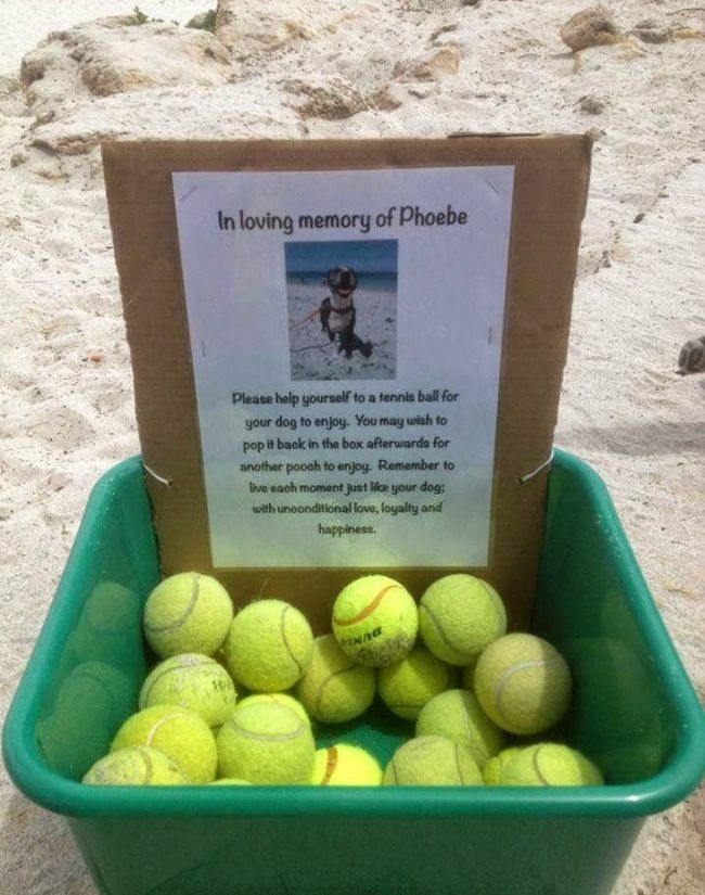 В память о своей собаке хозяин оставил мячики, чтобы каждый мог поиграть со своим питомцем.