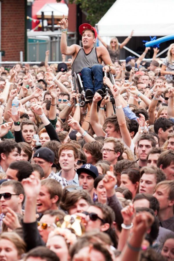 Толпа помогла парню в коляске насладиться концертом в Мельбурне.