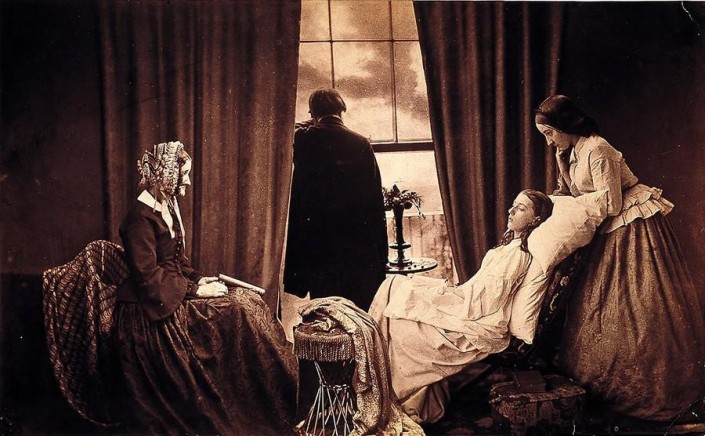 В 1858 году Генри Пич Робинсон выполнил первый фотомонтаж, сведя пять негативов в одно изображение. Скомбинированная фотография называется "Fading Away". На ней изображена смерть девочки от туберкулеза. В те годы работа вызвала массу споров.