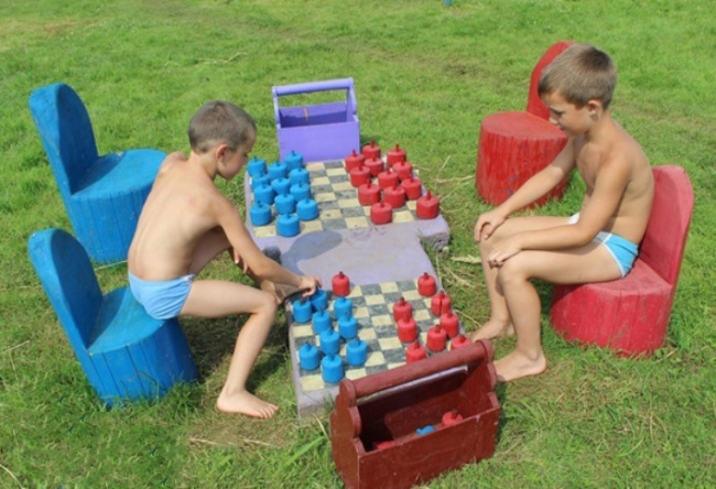 Пенсионер Вячеслав Иванович по собственной инициативе построил "аквапарк". Любой желающий может поплескаться в воде абсолютно бесплатно. Чего тут только нет: горка для спуска в небольшой бассейн, площадка для игры в волейбол и футбольное мини-поле, разные виды качелей, необычная зона для игры в шашки, трамплины для прыжков в воду, деревянные ступеньки для спуска в реку. Все это - дело рук пенсионера.